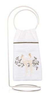 Nessa opção o bordado é feito diretamente no corpo da Toalha de Lavabo Donalice Decor linha Luxo Calopsita, finalizado com aplicação de uma delicada renda de guiper.