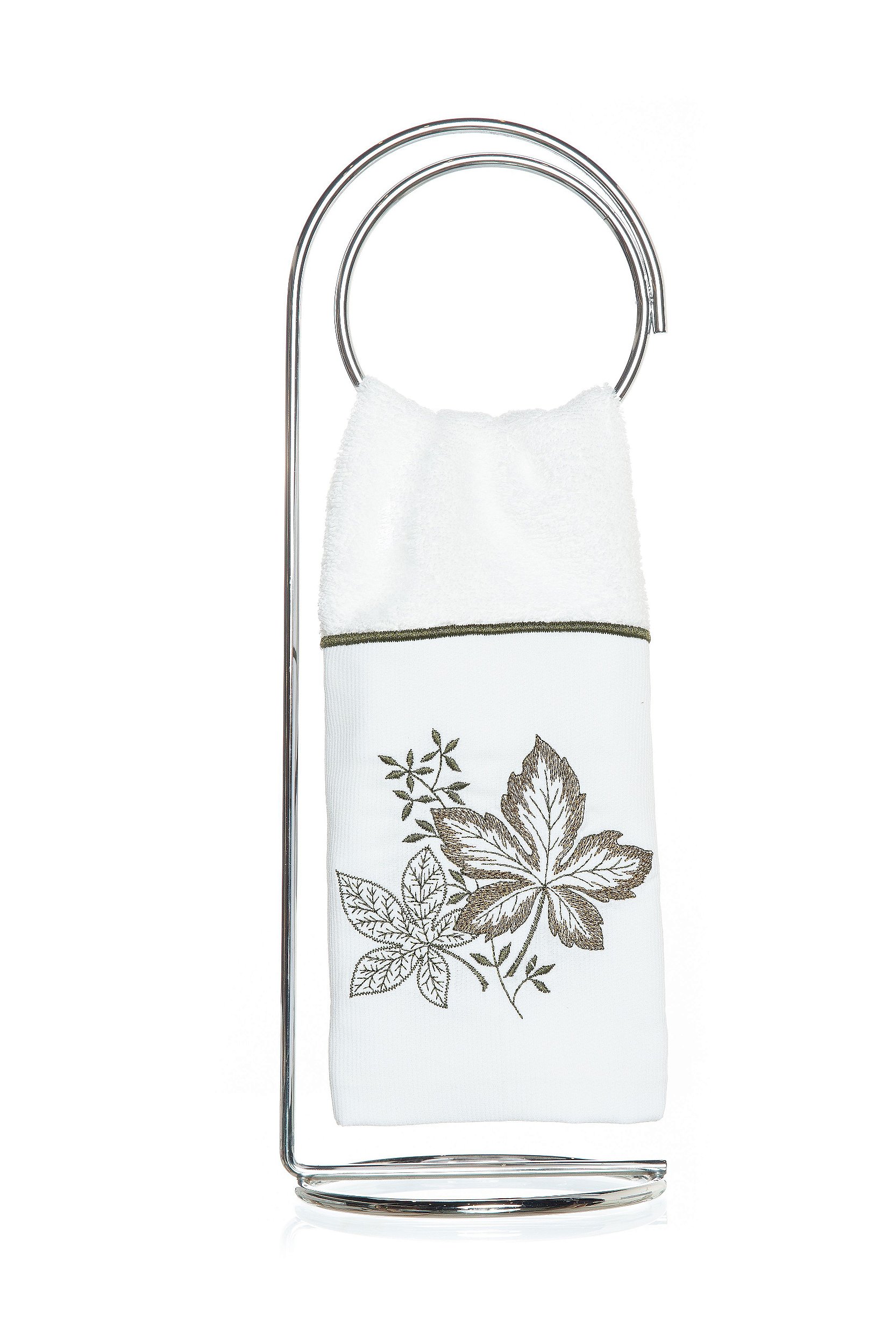 Nessa opção o bordado é feito diretamente no corpo da Toalha de Lavabo Donalice Decor linha Luxo Folhas, finalizado com aplicação de uma delicada renda de guiper.