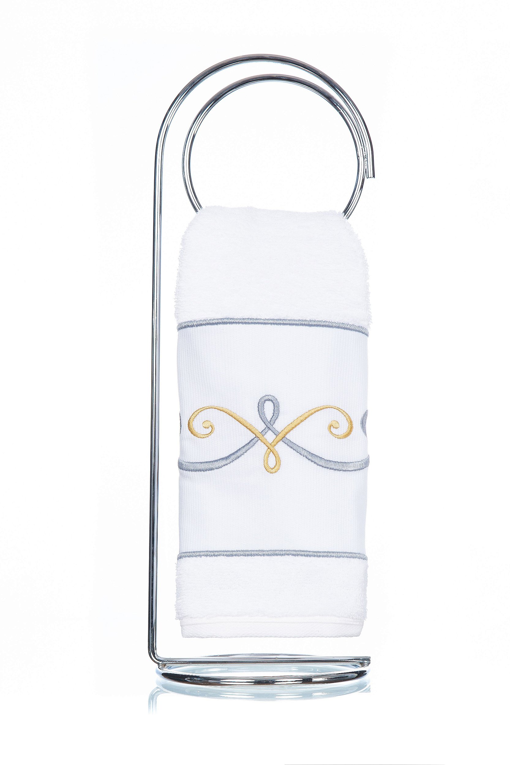 A Toalha de Lavabo Donalice Decor Linha Luxo Laços, possui acabamento com aplicação de bordado feito em tecido de fustão (100% algodão), e depois aplicado no corpo da toalha, finalizado com um delicado bordado em ponto royal.