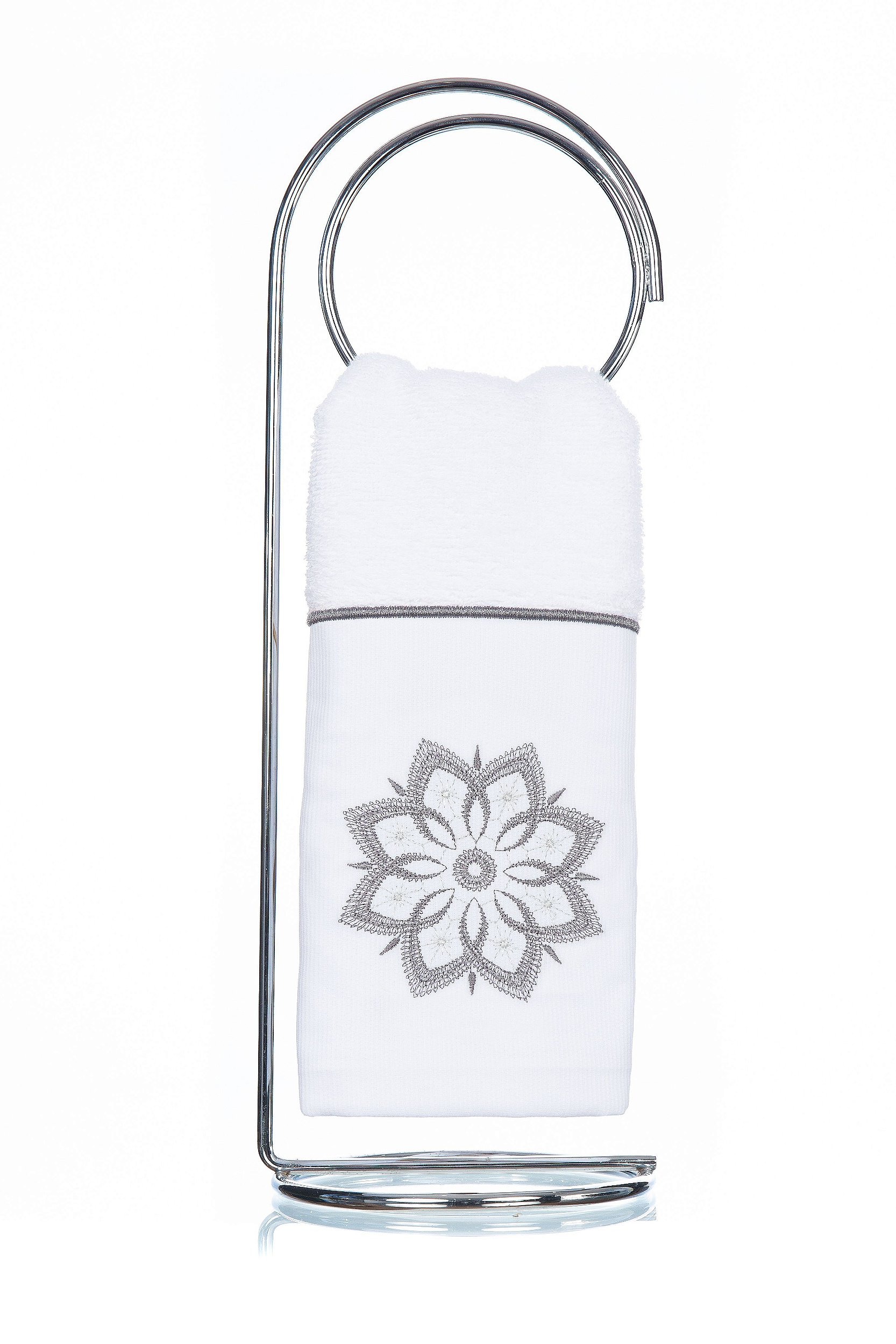 A Toalha de Lavabo Donalice Decor Linha Luxo Mandala, possui acabamento com aplicação de bordado feito em tecido de fustão (100% algodão), e depois aplicado no corpo da toalha, finalizado com um delicado bordado em ponto royal.
